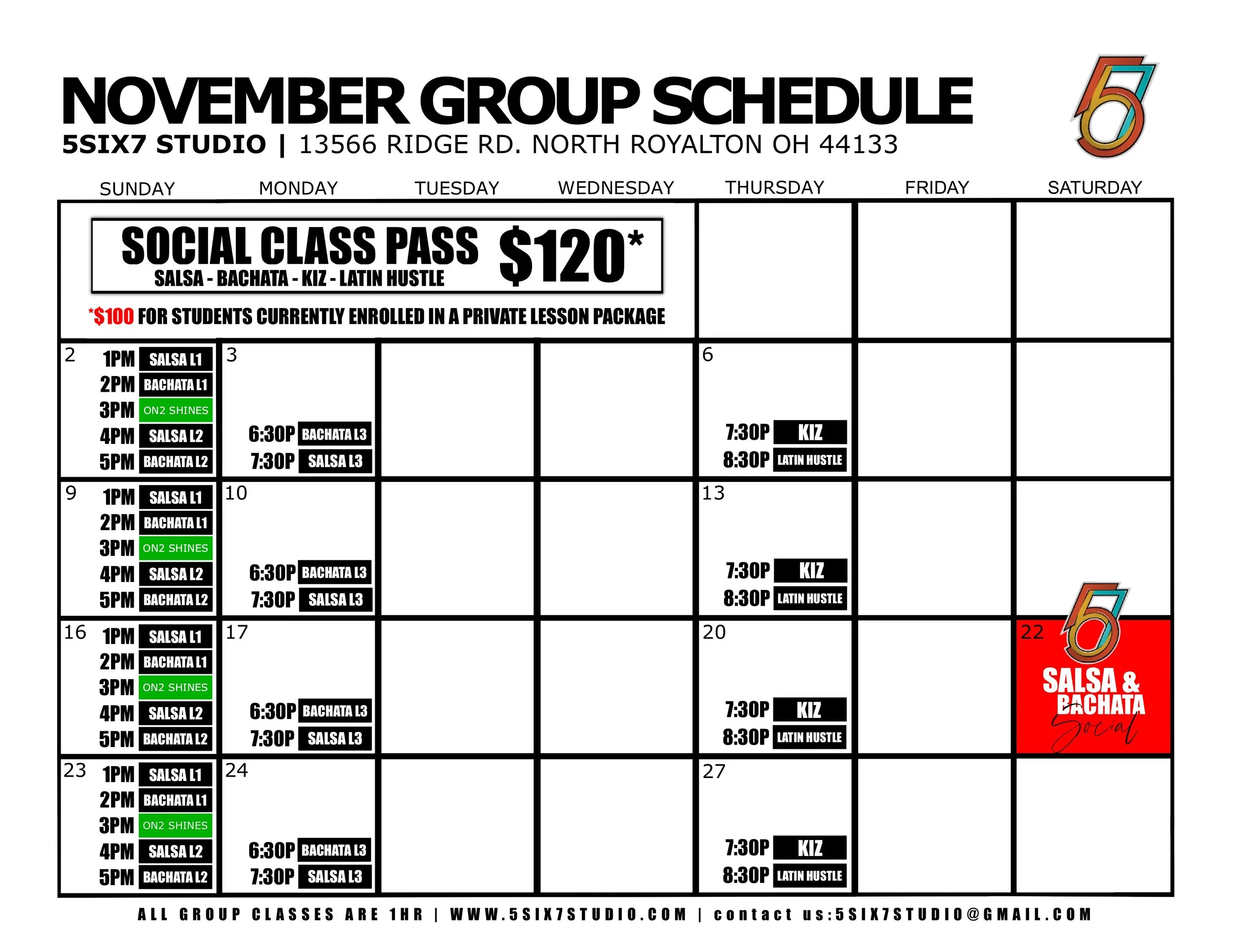 VALID FOR ALL SALSA, BACHATA, KIZOMBA AND LATIN HUSTLE GROUP CLASSES WITHIN (1) CALENDAR MONTH